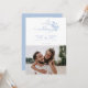 Blue Floral Garland Photo Card Couple Wedding Invitation.