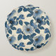 Blue Floral Gold Glitter Japanese Ukiyo-e Round Cushion