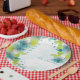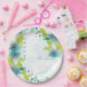 Cute & fun summertime print of multicolored Blue toned flowers, dotted scrolls & Spring Green leaves cover the rims of these fresh & refreshing paper plates. Aqua coloured texts reads:"happy" & "birthday". Great for parties, family get-togethers' & summertime BBQ's. Buy as is or customise. Print on front only. White, Blue, Green multicolored print.
