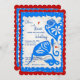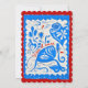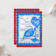 Mexican blue & red floral papel picado Mexican wedding invitation. Handmade look! Celebrate your special day with our exquisite Mexican wedding invitation that perfectly captures the essence of a Mexican fiesta-style wedding. Inspired by the timeless tradition of handmade papel picado, this invitation showcases intricate Mexican blue papel picado drawings with two decorative pink drops, adding a vibrant touch to the boho simple, modern, and elegant design. The unique handmade look of the invitation ensures a truly authentic feel, with soft whites that blend seamlessly into the colourful backdrop.