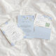 Elegant floral Wedding RSVP Card, featuring a pastel blue delicate hydrangea floral arrangement and elegant typography.