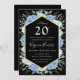 Blue Floral Leaves Black Twenty 20th Birthday Invitation