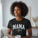 This T-shirt showcases bold varsity “MAMA” lettering decorated with soft blue floral detailing and a delicate bow accent. The lightweight design offers a clean and modern motherhood look that feels both stylish and effortless. The adjustable EST year highlights a special milestone while keeping the overall aesthetic simple and refined.