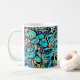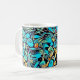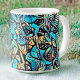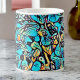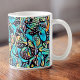 This design features a turquoise blue design that weaves floral elements into a modern art-style vivid pattern, which might just give you a boost when you grab your morning java or afternoon tea. This design is a stylised, abstract pattern based on a hydrangea.