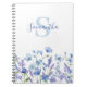 Delicate blue watercolor wildflower floral notebook with monogram and name. For school or office. Easy to change the text.