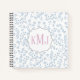 Blue flower design Pattern. This design features a monogrammed, simple, pink, trendy, chic, stylish, blue, monogram initial, with blue floral, a custom personalised notebook.
