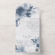 Blue Floral on Distressed White with QR Code All In One Invitation