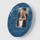Change the photo and the text to personalise this blue abstract floral photo template wedding, engagement, or anniversary wall clock. An elegant floral design.