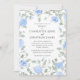 Blue Floral Photo Modern Watercolor Wedding Invitation