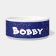 Blue floral pattern pet bowl. Add your pet name.