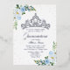 Quinceanera Invitation Tiara And Blue Flowers Foil Invitation.