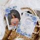 Blue floral silver tiara princess Quinceanera Invitation