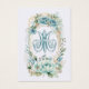 Featuring a beautiful Catholic image of a Marian "M" with blue flowers on a gold decorative frame with a gold decorative frame. All text and fonts are in Spanish and may be modified.
