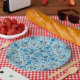 Blue floral tiles paper plate