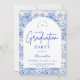 Blue Floral Toile Graduation Party Invitation