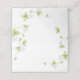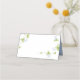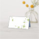 Pretty wedding folded place card done in white, with graphics of delicate leafy green vines with blue little flowers. The inside of the tent style card is done in a light blue. Personalise by hand, for each person at your reception.