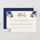 Chic blue floral wedding invitation enclosure card featuring modern script text at the top. Customise this invite by adding information on your wedding including reception, accommodation, and website. Perfect for any season.
