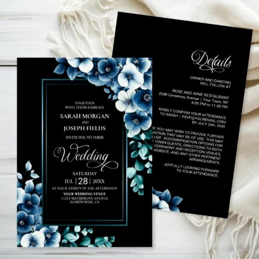 Blue floral wedding table number.