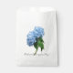 Blue hydrangea flowers favour bags. Wedding thank you message favour bags for guests. These bags come in white or kraft paper in packs of 50 bags.
