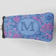 This customisable ladies putter golf head cover features a pink and blue pattern adapted from a William Morris design, with a personalizable monogram. It's a stylish accessory that would be a good gift for any woman who plays golf.