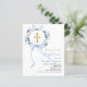 Blue floral wreath bow boy baptism invitation