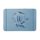 Blue Floral Wreath Custom Monogram Stripes Bath Mat
