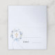 Guide guests to their seats with this elegant religious place card. The design features a delicate blue watercolor floral wreath surrounding a gold cross, accented by a graceful light blue ribbon. This card is a beautiful and functional addition to the reception table for a boy's baptism.