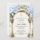 A large marble arch decorated with blue florals and a golden cross. Personalise and add a name and details.