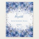A white background with blue faux glitter dust and blue florals. The name is written with a modern hand lettered style script. Personalise and add your name, title and year.