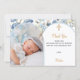 Blue florals photo arch boy Baptism Thank You card