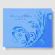 Pretty blue wedding guest book with a darker blue ornate flourish. Personalise the text fields for your special day.