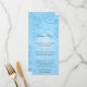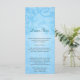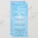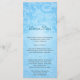 Floral scrollwork makes a unique look for this lovely blue wedding menu card. The image is repeated on the bottom as a watermark to offset the customised wedding menu text. The entire image is repeated on the reverse in an opposite manner and text can be added or removed above it. An elegant and classic look for a special day. Available in alternate colours with matching products.