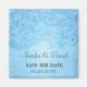 Floral scrollwork makes a unique look for this lovely blue save the date magnet. The image is repeated on the bottom as a watermark to offset the customised text. Add the names and event date underneath to make an elegant and classic look for a special day. Available in alternate colours with matching products.