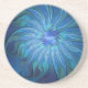 Blue Flower Fantasy Pattern, Abstract Fractal Art Coaster