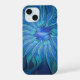 Blue Flower Fantasy Pattern, Abstract Fractal Art iPhone 15 Case