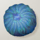 Blue Flower Fantasy Pattern, Abstract Fractal Art Round Cushion