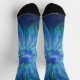 Blue Flower Fantasy Pattern, Abstract Fractal Art Socks