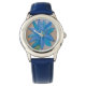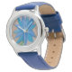 Vivid blue petals and a yellow centre make for a cheerful, cute floral design. Imagining this adorable blue flower growing in a wildflower meadow or English cottage garden will bring you the joy of a hot summer afternoon every time you check the time.