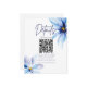 Elegant floral design featuring modern handwritten style script, QR CODE and watercolor blue Flowers on white background.The text can easily be personalised for a unique one of a kind design for your special day.