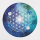 blue, flower of life, sacred geometric,mandala,zen,chakra, energy, magnetism, Medium Circle Waterproof Label,
