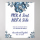 Blue Flower Pick a Seat not a Side Wedding Poster