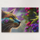 Blue flowered calico cat, Fantasy Jigsaw Puzzle