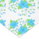 Fresh and clean designer tablecloth with blue flowered art with greens. The white background can be changed to your favourite colour.