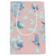 blue flowers and bird ,Background light rose colou Medium Gift Bag
