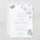 This invitation is more than just a piece of stationery; it's a visual ode to love and nature. The modern white background, adorned with dainty blue flowers and whimsical butterflies, creates a sense of wonder and excitement. It promises a bridal shower filled with enchantment, laughter, and cherished moments.