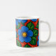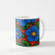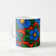 Blue Flowers and Green Leaves on a Red Background Coffee Mug