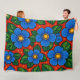 Blue Flowers and Green Leaves on a Red Background Fleece Blanket