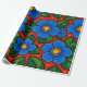 Blue Flowers and Green Leaves on a Red Background Wrapping Paper