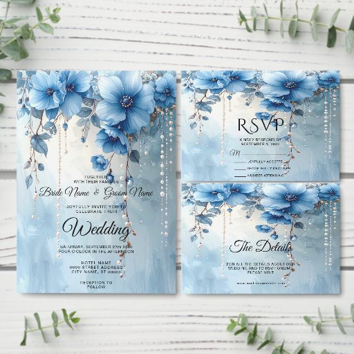 Beautiful Blue Flowers and Pearls Tabletop Sign