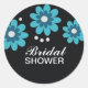 Blue flowers on a black sticker with the words Bridal Shower on it are perfect as seals for your invites and your bridal shower favours.They add a stylish and personal touch to your bridal shower celebrations.